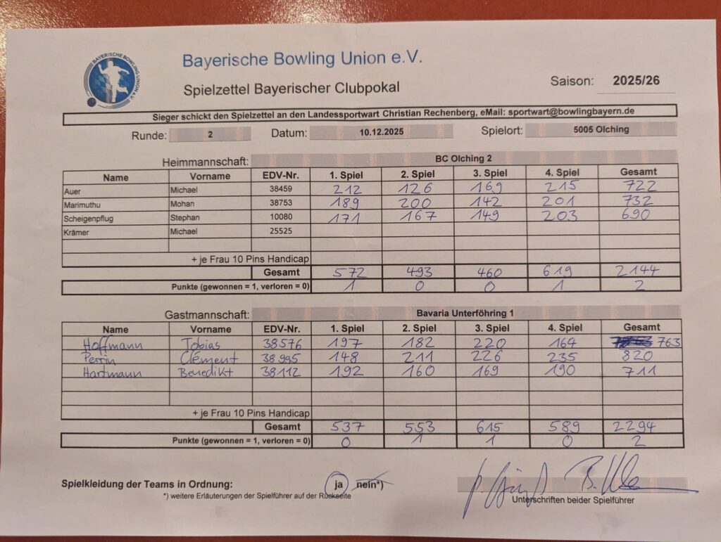 Nachdem wir vom letzten Ligaspieltag alle noch warm und hungrig sind, wollten wir die 2.Runde noch schnell mitnehmen. Dankenswerterweise hat Olching 2 die Bereitschaft signalisiert vor dem Jahresende die Runde zu absolvieren und so sind wir am 10.12.25 um 19Uhr ohne Maxx nach Olching gereist.